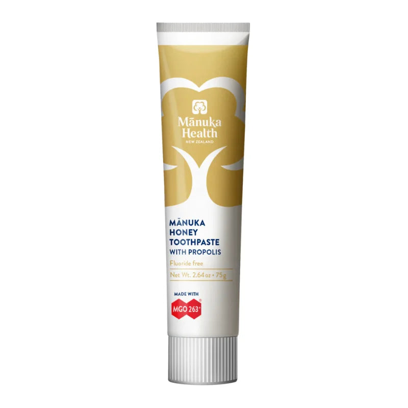 Calcium carbonate, Water/Aqua, Glycerin, Sorbitol, Xylitol, Honey / Mel (Manuka Honey), Lauryl Glucoside, Silica, Chondrus Crispus (Carrageenan Gum), Mentha Piperita (Peppermint) Oil, Xanthan Gum, Propolis Extract, Menthol, Glycyrrhiza Glabra (Licorice) Root Extract.